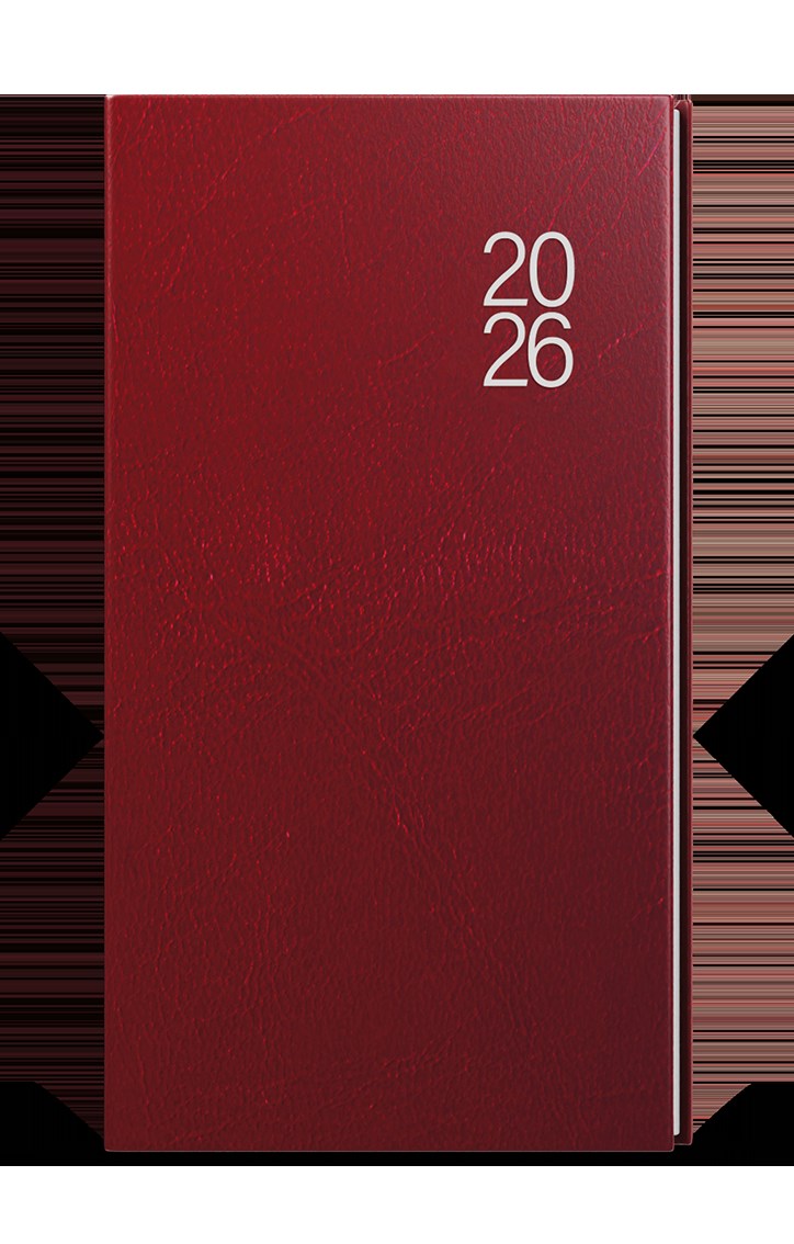 Kapesní týdenní diář v bordó barvě je vyráběný z oblíbeného, jemně strukturovaného materiálu. Jedná se o praktický doplněk do každé kapsy, který díky velkému prostoru na poznámky, ulehčí Vaše plánování. Ražba roku přes stříbrnou pásku, šitá vazba V8, stužka, perforované rožky, ofset, 70g/m2. Formát 75 x 150 mm.