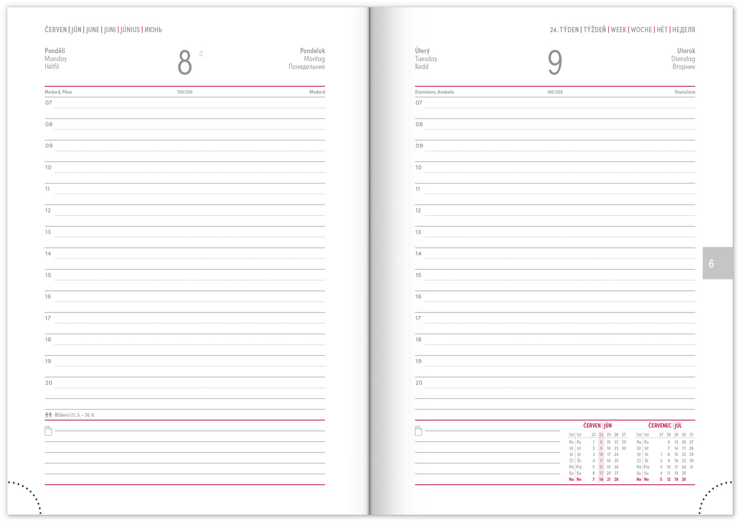 Plánovací denní diář Balakon 2026 v zeleném provedení, doplněný o stříbrný letopočet. Povrch diáře si získal oblibu díky kvalitnímu svrchnímu materiálu, který je extrémně odolný vůči vnějšímu poškození. Denní rozvrh s česko-slovenským kalendáriem a doplňkovou angličtinou, němčinou, maďarštinou a ruštinou. Gramáž 70 g/m². Počet 352 stran. Formát: 15 x 21 cm.