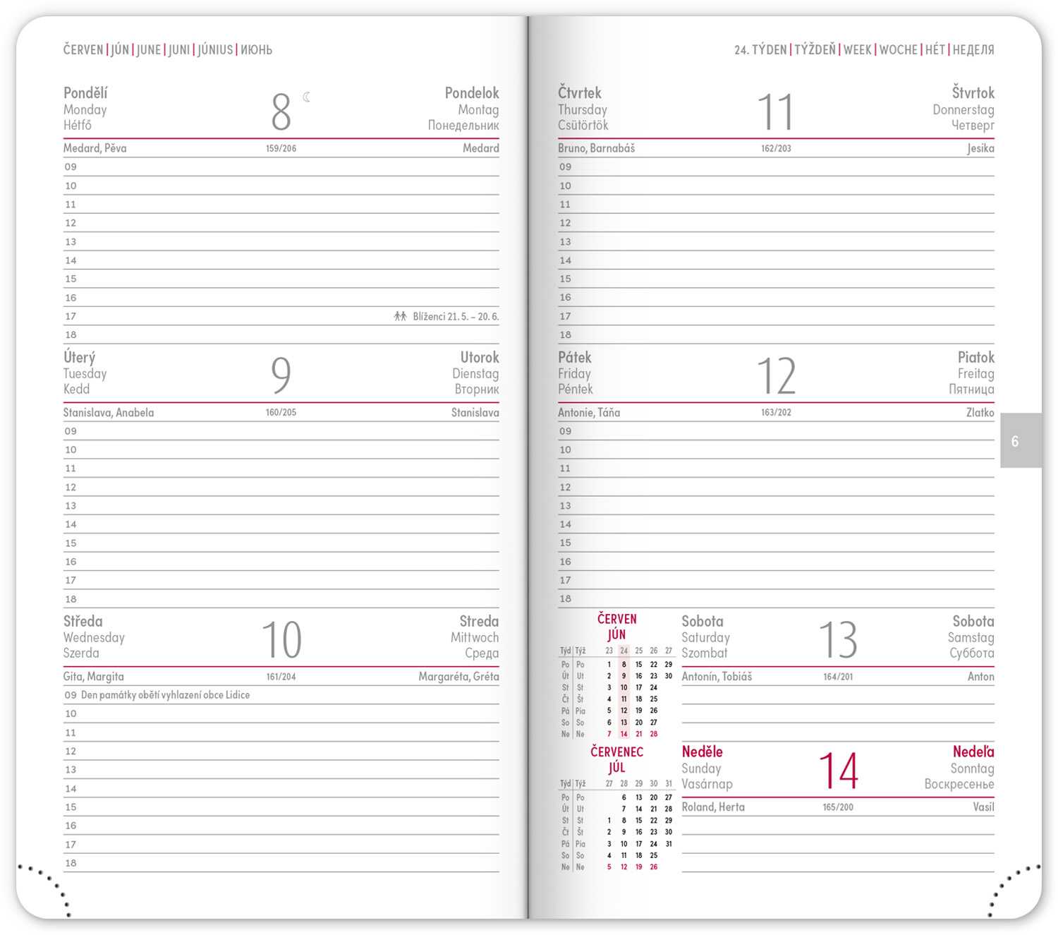 Plánovací kapesní diář Balakon 2026 v tmavě modrém provedení, doplněný o stříbrný letopočet. Povrch diáře si získal oblibu díky kvalitnímu svrchnímu materiálu, který je extrémně odolný vůči vnějšímu poškození. Týdenní rozvrh s česko-slovenským kalendáriem a doplňkovou angličtinou, němčinou, maďarštinou a ruštinou. Gramáž 70 g/m². Počet 128 stran. Formát: 9 x 15,5 cm.