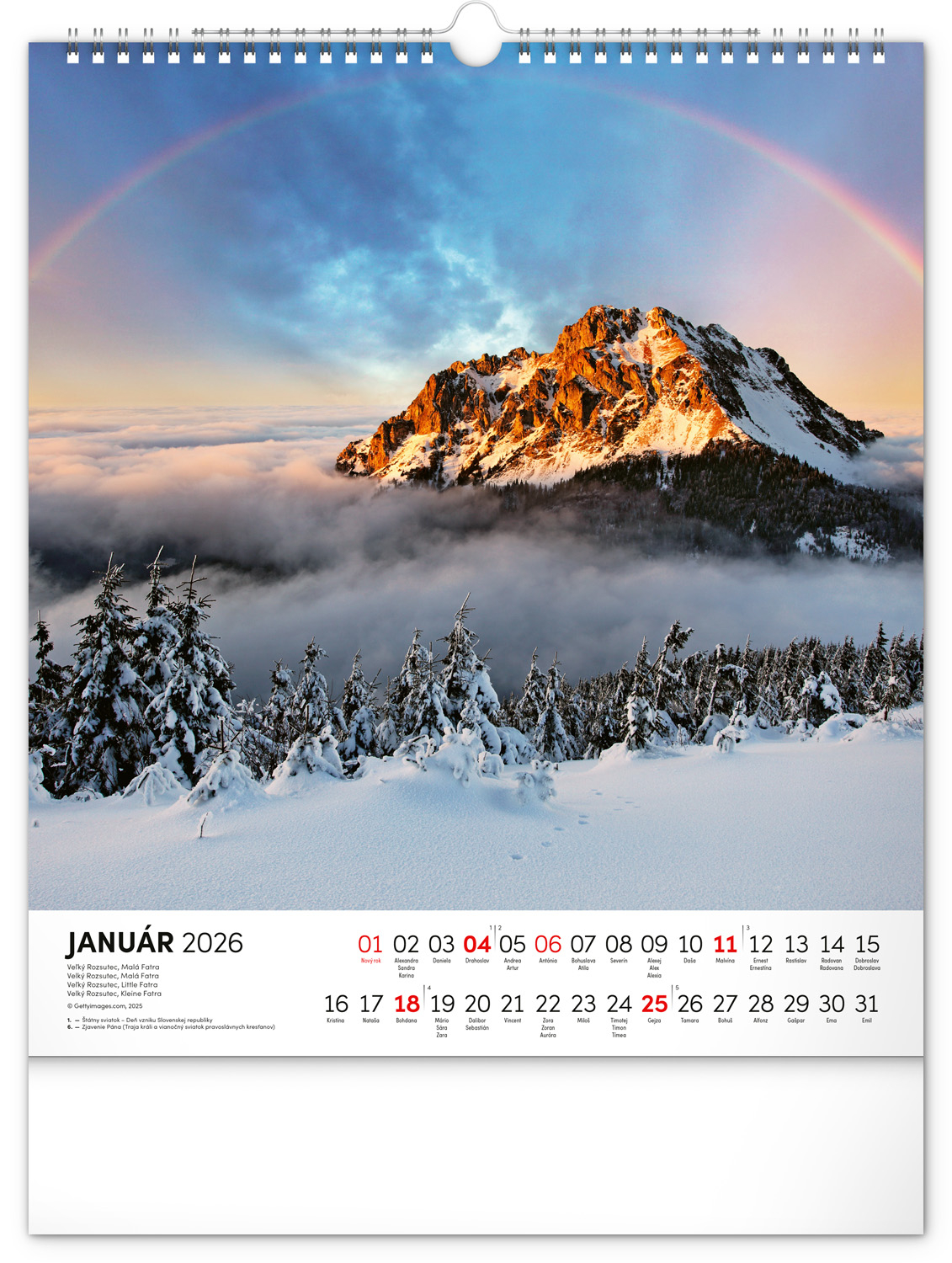 Prírodné a kultúrne dedičstvo Slovenska na stránkach kalendára v obľúbenom výškovom formáte. Fotografie dopĺňa slovenské kalendárium so zvýraznenými sviatkami a nedeľami. Formát kalendáře: 30 x 34 cm.