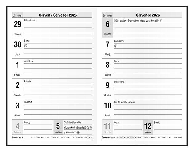 *B26 BTG9-1-26 Týdenní diář - Gustav - Lamino - Kopretiny