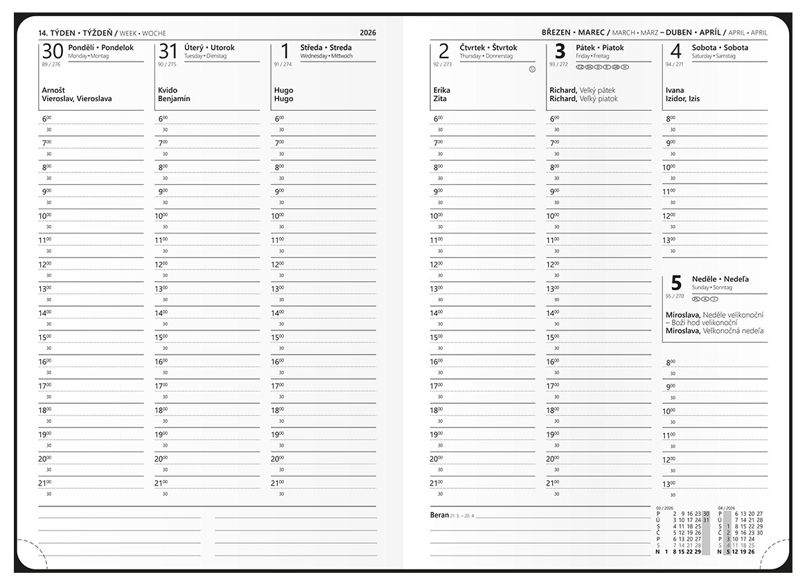 Originální diář ve formátu A5 s ohebnou vazbou a obalem v luxusním provedení imitace kůže. Praktický výsek na tužku ve hřbetu diáře zajistí, že budete mít svou propisku vždy po ruce. Ideální společník pro každodenní plánování, práci i osobní organizaci. Flexovazba, jemný hladký materiál s lesklým povrchem, kulaté rohy, perforované rožky, kapitálky, 1x stužka, 1x ražba, mapa ČR a SR, vlepená kapsa, výsek na tužku, ofset, 70g/m2. Formát A5 (148 x 210 mm).