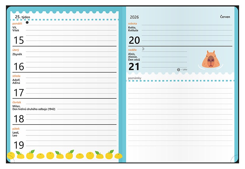 *B26 BTS9-4-26 Týdenní diář - Student - V8 - lamino - kapesní - Kapybara , kalendárium září 2025 - srpen 2026