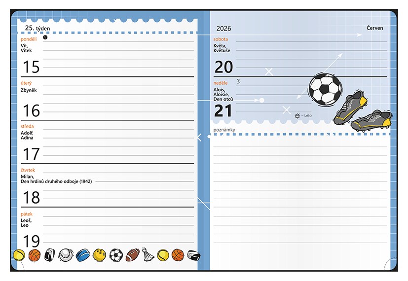 *B26 BTS9-5-26 Týdenní diář - Student - V8 - lamino - kapesní - Sport , kalendárium září 2025 - srpen 2026