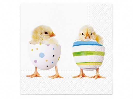 Papírový velikonoční ubrousek. Krásné velikonoční ubrousky s obrázky kuřátek v barevných skořápkách dodají prostřenému stolu nádech přicházejícího jara a vykouzlí příjemnou atmosféru u slavnostního oběda nebo večeře. Ubrousek je kvalitní z třívrstvého papíru. Vhodný i na ubrouskovou techniku a různé dekorace.